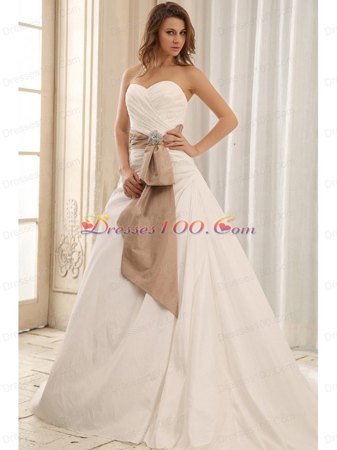 Sweetheart Wedding Dress Sash and Ruched Taffeta