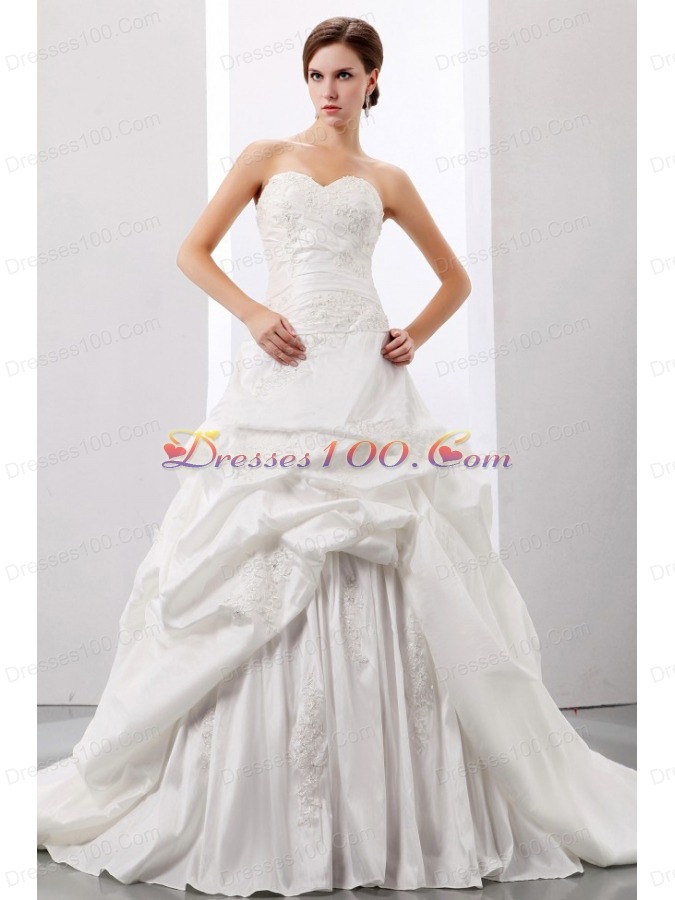 Taffeta Wedding Gowns Princess Pick-ups and Appliques