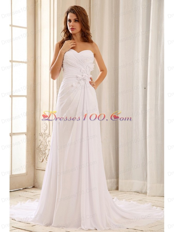 Wedding Dress Hand Made Flowers Ruched Bodice Sweetheart