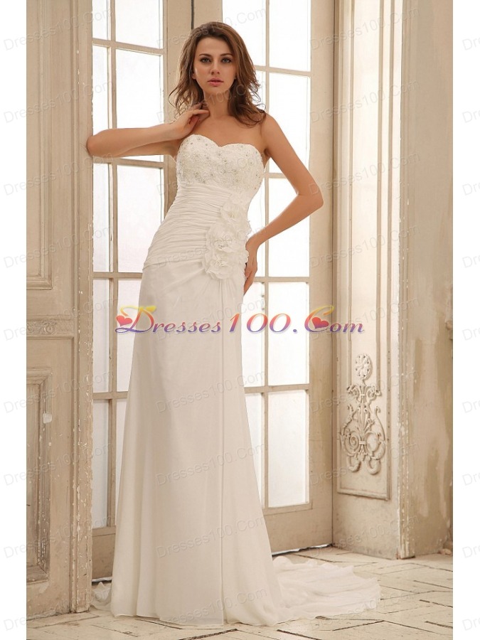 Sweetheart Beach Wedding Dress Floral Ruched Appliques