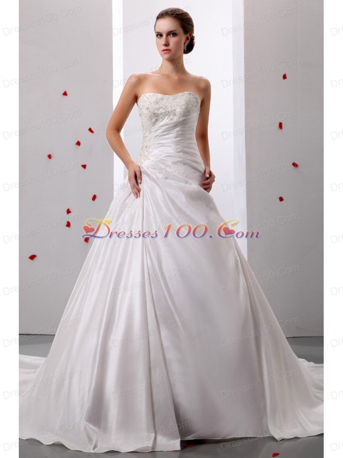 Princess Appliques and Ruch Wedding Gowns With Taffeta