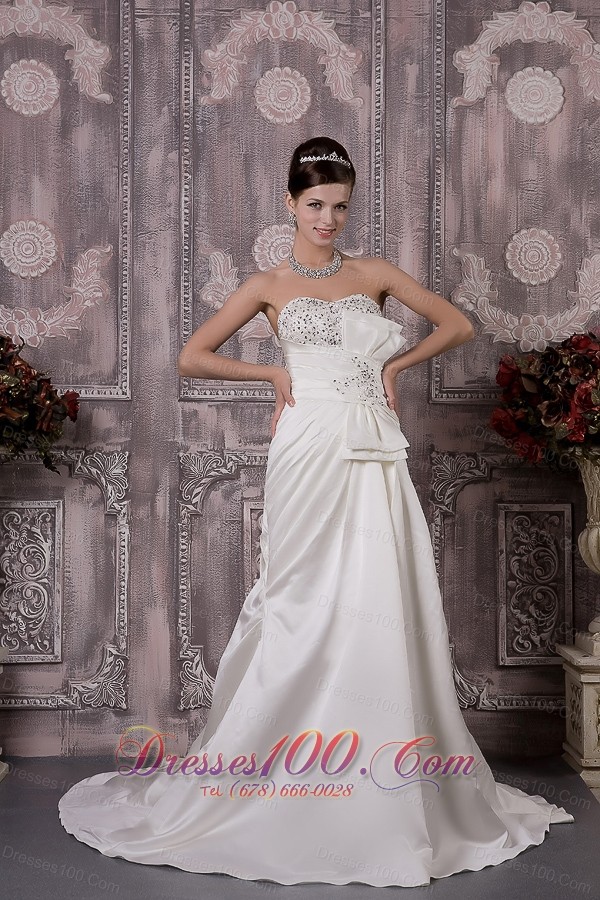 Pretty A-line Wedding Dress Bowknot Court Train Buttons