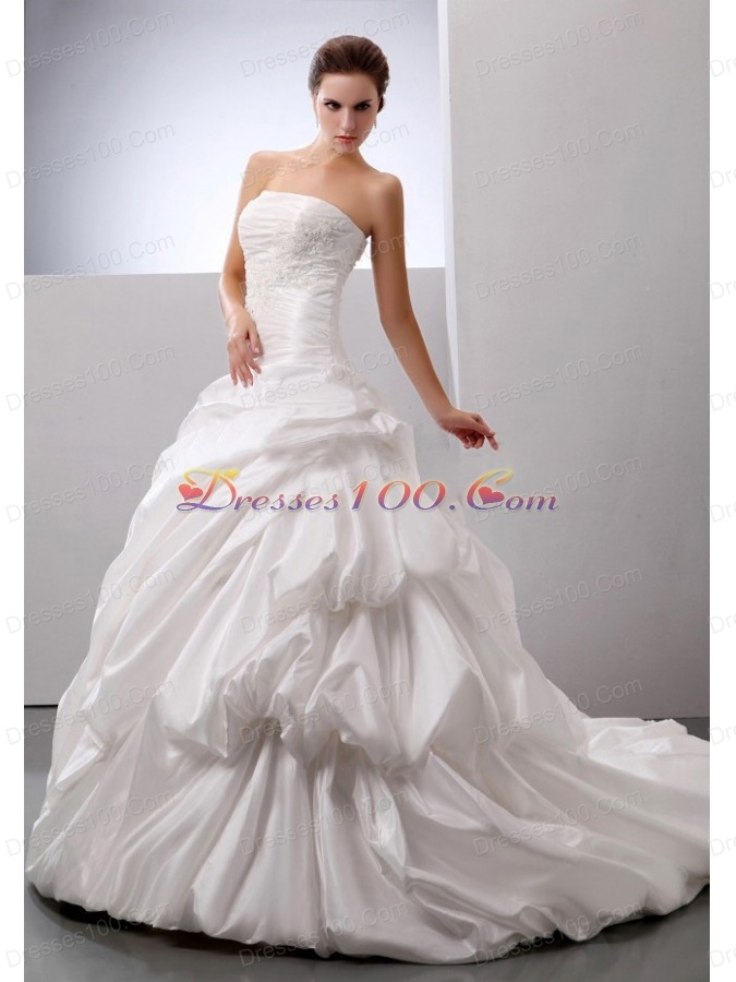 Wedding Gowns With Pick-ups Appliques Decorate Bust