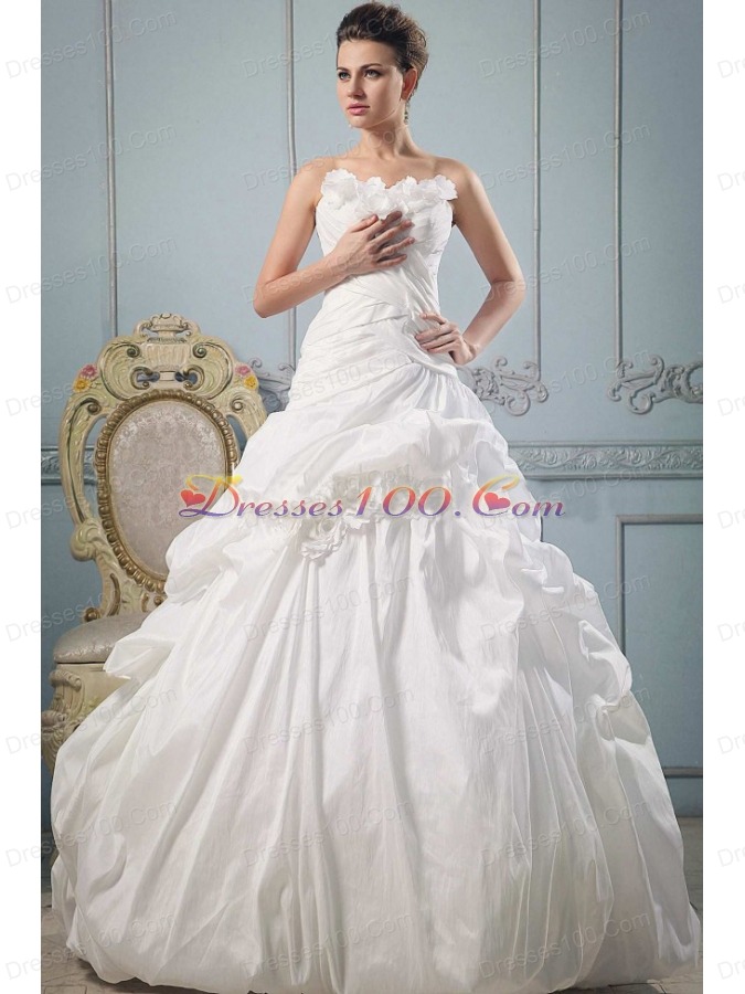 Strapless Wedding Gowns With Hand Made Flowers and Ruch