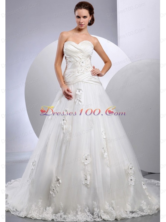 A-line Sweetheart Wedding Gowns With Appliques and Ruch