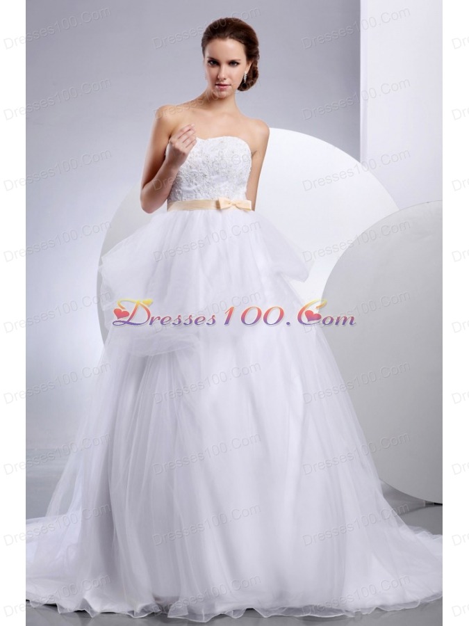Strapless Wedding Gowns Appliques and Sash In Wedding Party