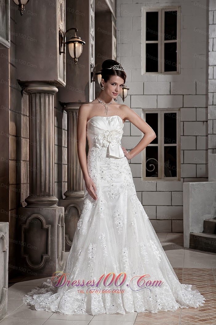 Handle Flowers Wedding Dress A-line Lace Overlay