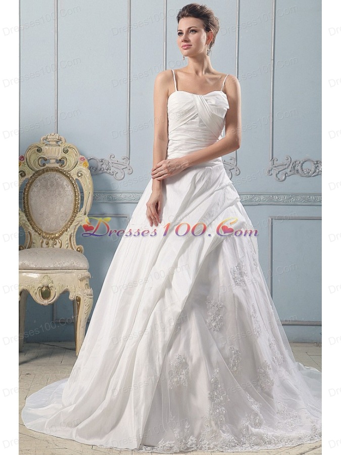 Spaghetti Straps Wedding Gowns Lace With Ruched Bodice