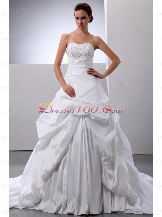 New Arrival Princess Appliques and Pick-ups Wedding Dress With Taffeta In 2013