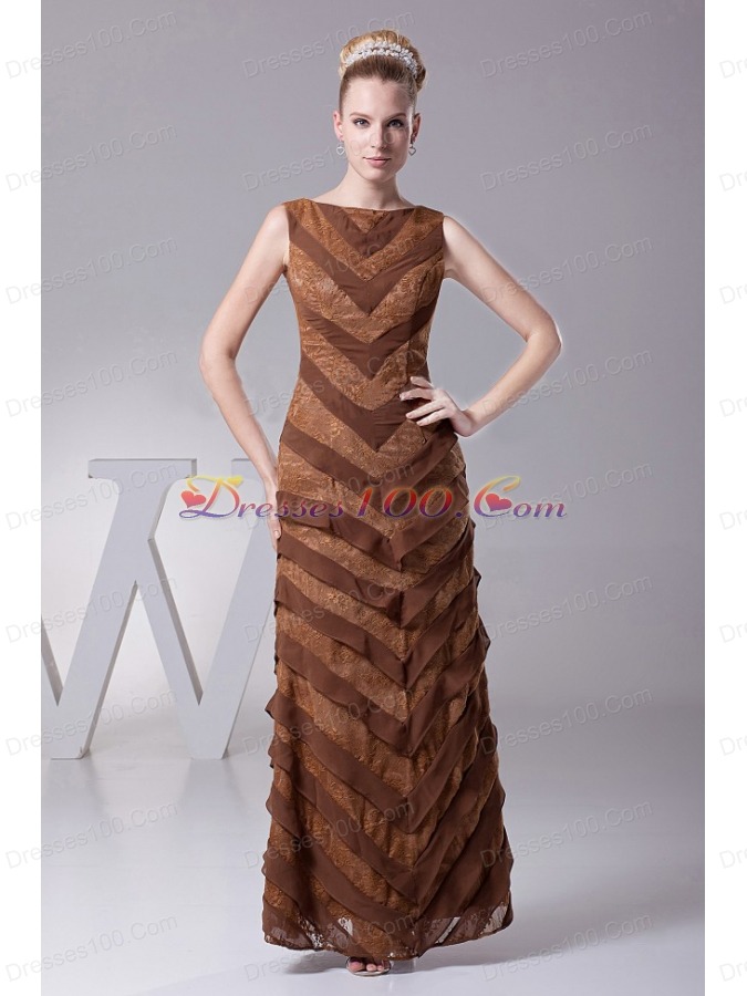 Column Designer Mother Of The Bride Dress Bateau Brown