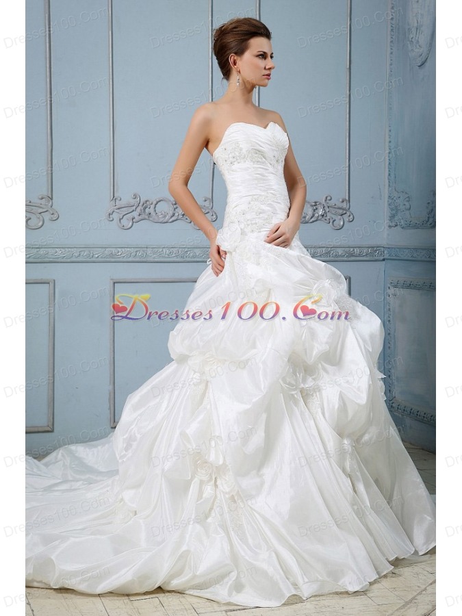Wedding Ball Gown with Pick-ups Appliques Flower Train