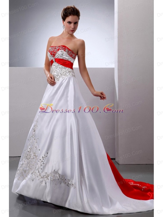 A-line Embroidery and Beading Court Train Wedding Dress