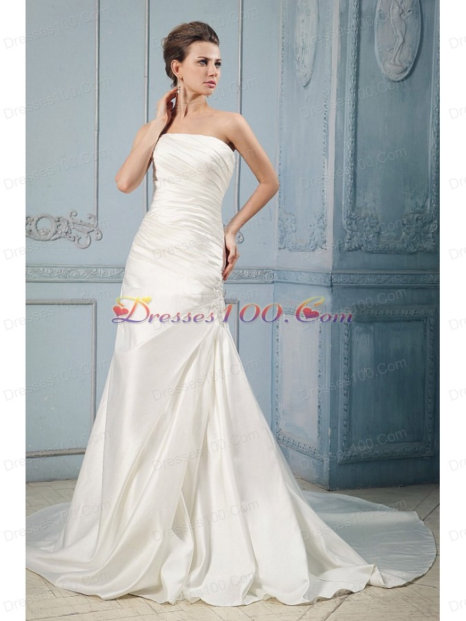 Taffeta Wedding Dress With Ruching Appliques Court Train