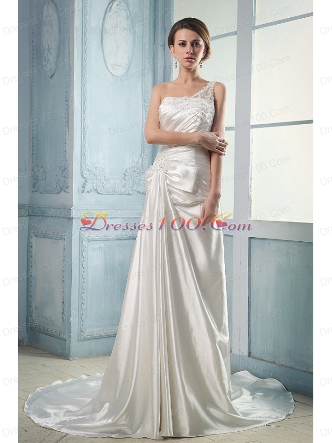 Wedding Dress One Shoulder Appliques and Beading Ruching
