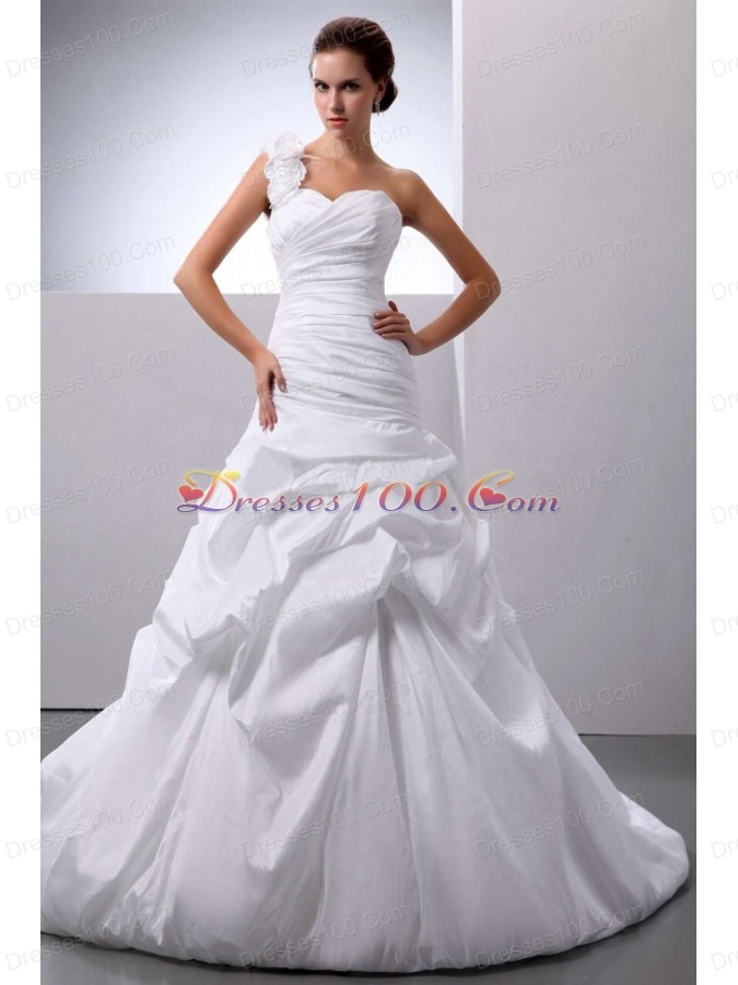 A-line Pick-ups Wedding Gown With One Shoulder Train