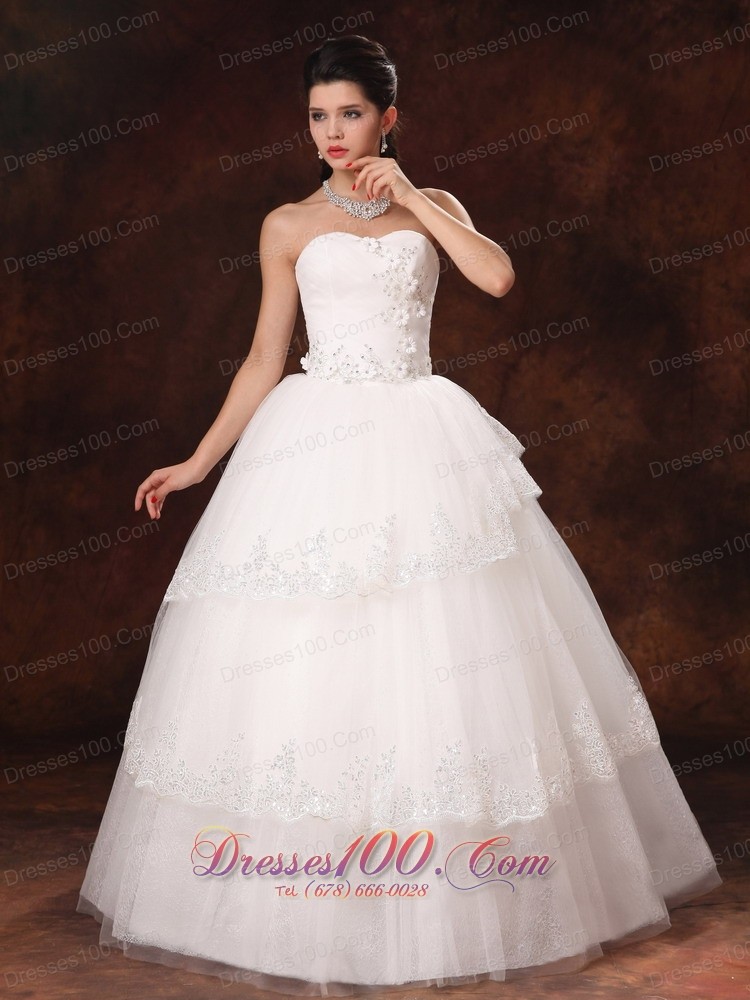 Designer Ball Gown Church Wedding Dress Appliques Tulle