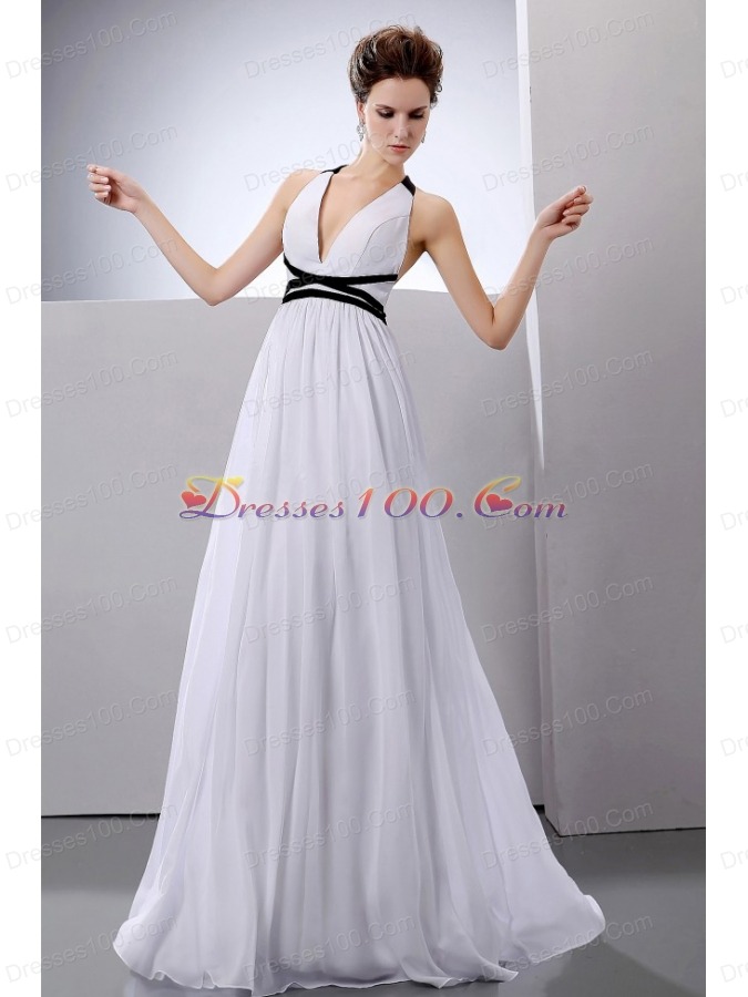 You'll absolutely love this sexy and unique wedding dress. The deep V-neckline and the open back show just enough skin to be classy without being too revealing. The back and whit e color is a perfect pair. The flowy chiffon is moving as you walk into the wedding. You will have a unforgetable wedding in this dress.