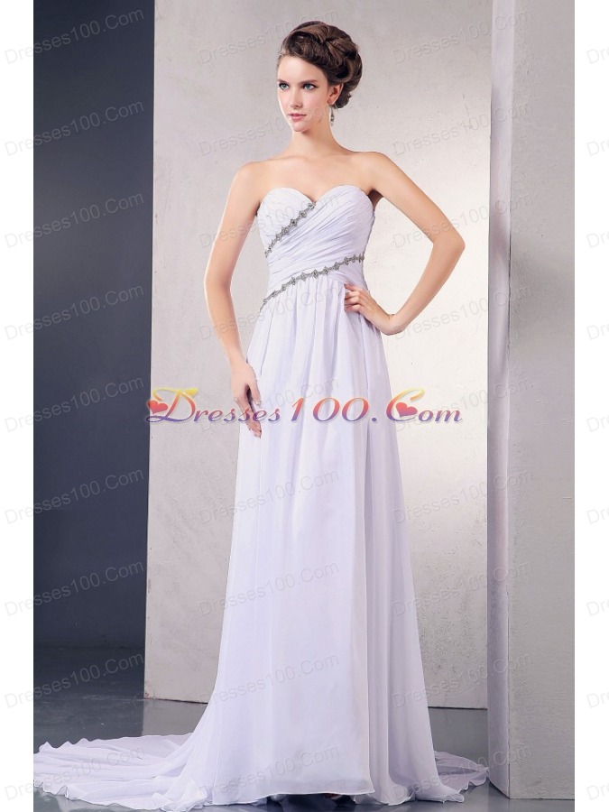 If there is a kind of fabric that ever girl want to wear, then it must be chiffon. Light ,dreamful and comfortable chiffon is always the favorites of the designers to make dresses. This amazing wedding dress features a sweetheart neckline bodice which is covered with delicate ruch and lined applique. The lace up back completes the look. This simple and elegent wedding dress is a classic choice for you.