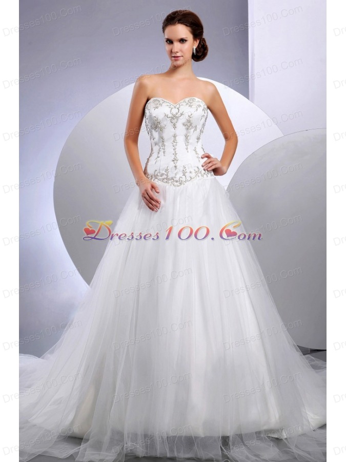 2013 Cathedral Embroidery Wedding Dress Sweetheart