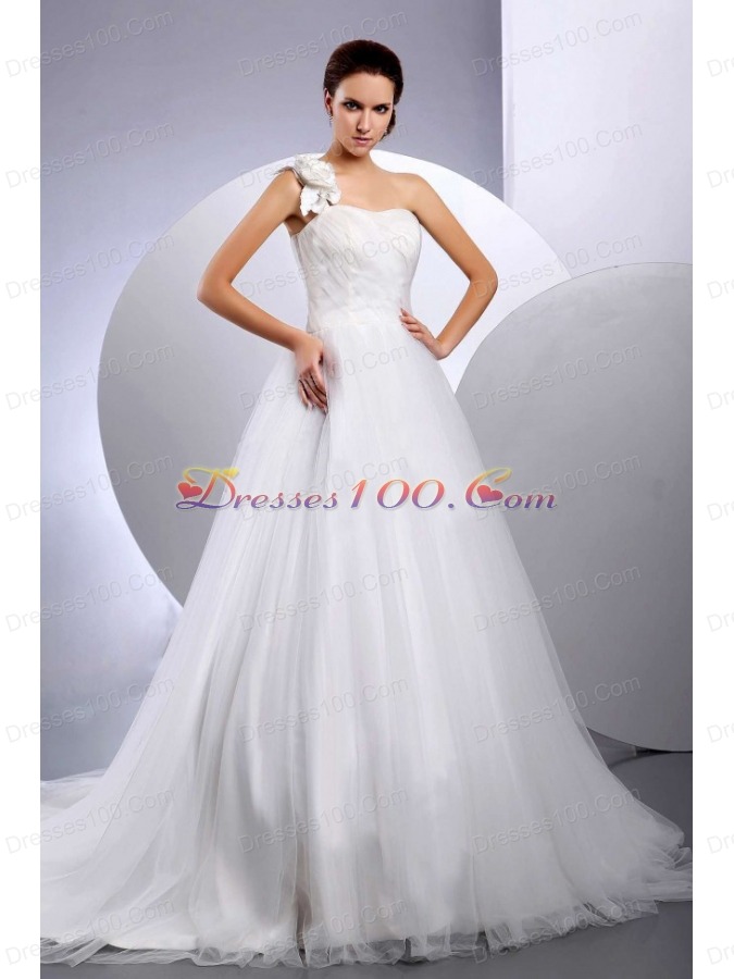 2013 A-line One Shoulder Wedding Dress Flower Court