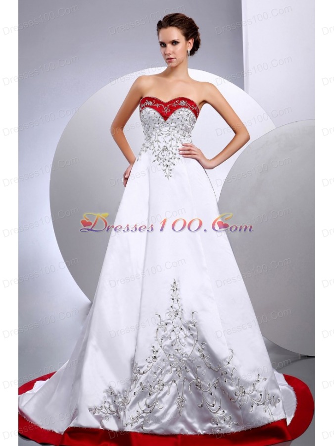 2013 Wedding Dress Embroidery Beading A-line Chapel