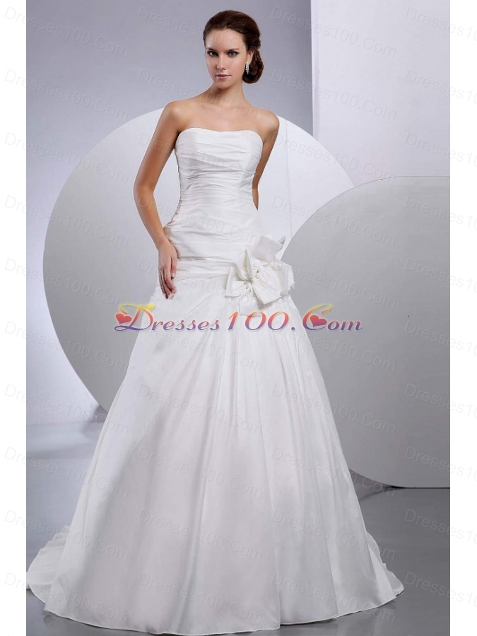 Handmade Flower Brides dresses Taffeta Court Train A-Line