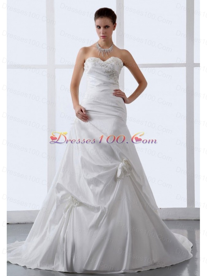 Hand Made Flowers Sweetheart A-line Wedding Dress Taffeta