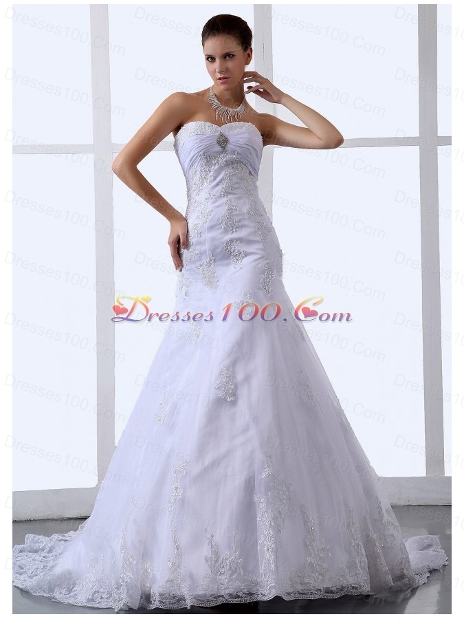 Mermaid Appliques Sweetheart Tulle Wedding Dresses Ruched