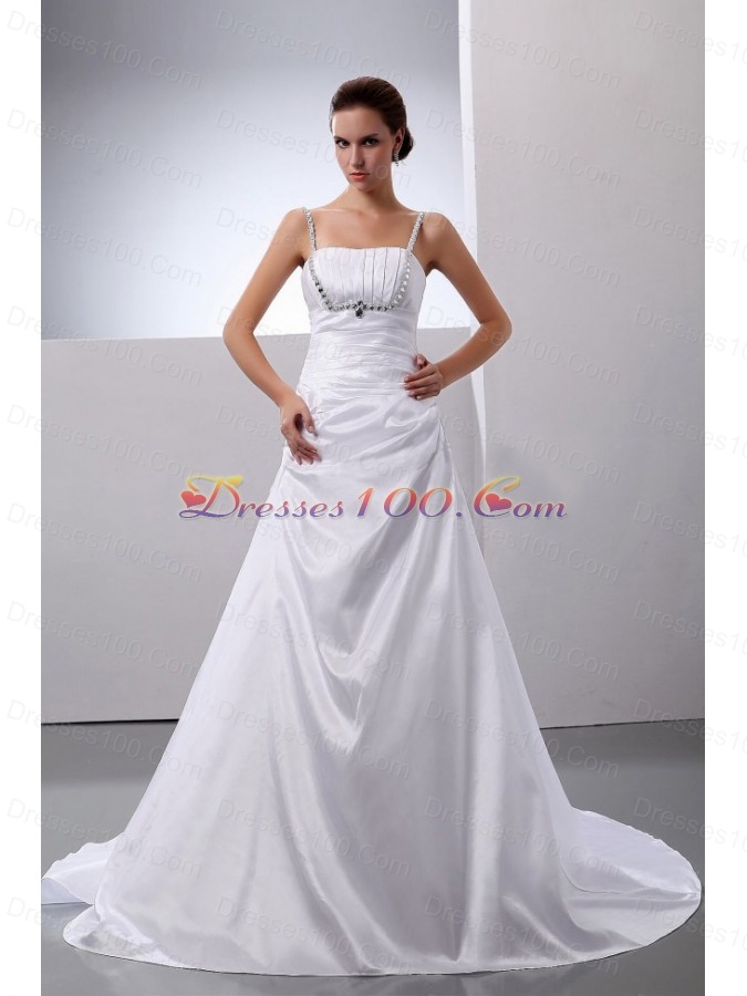 Spaghetti Straps Wedding Gown Dress Taffeta Beading