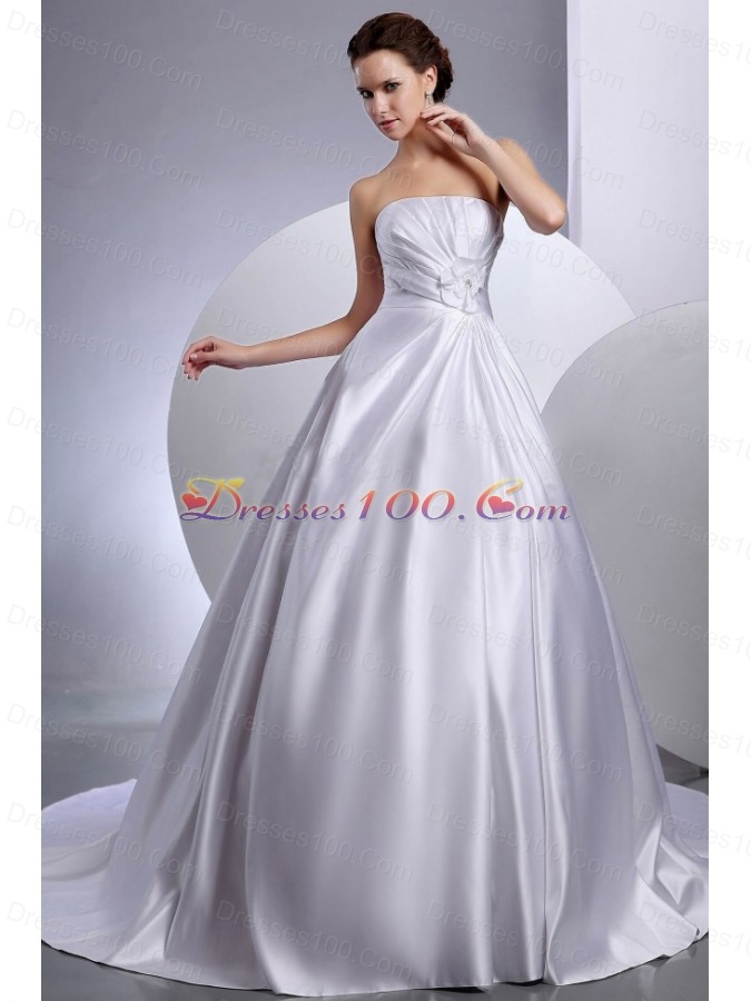 Chapel Train Wedding Gown Dresses Satin Strapless