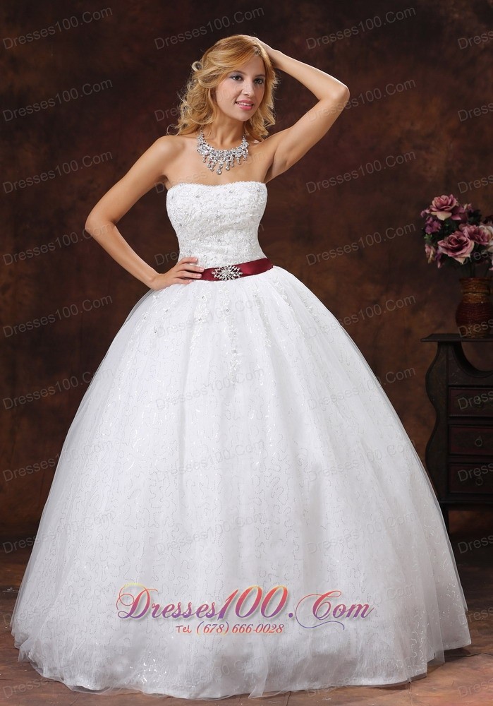 Lace Beading Decorate Ball Gown Wedding Dress Colored