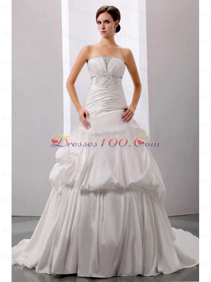 Beading A-Line Strapless Wedding Bridal Dress Taffeta