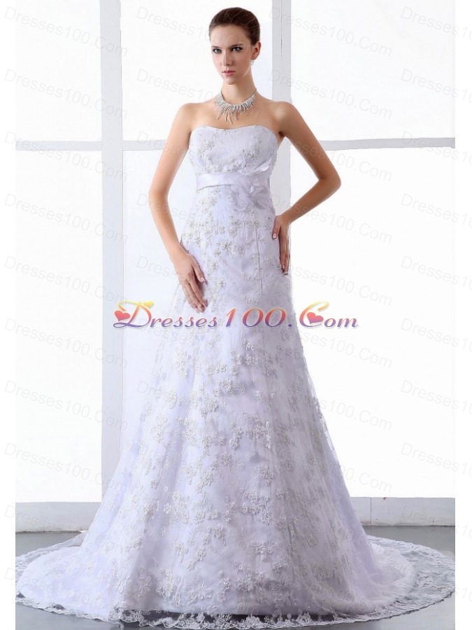 Appliques Wedding Dresses Sweep Train Strapless A-Line