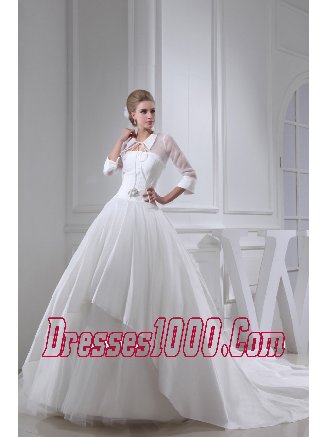 Beading Ball Gown Strapless Cathedral Train Wedding Dress