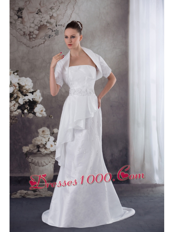 Strapless Column Jacket Beading Appliqes Wedding Dress