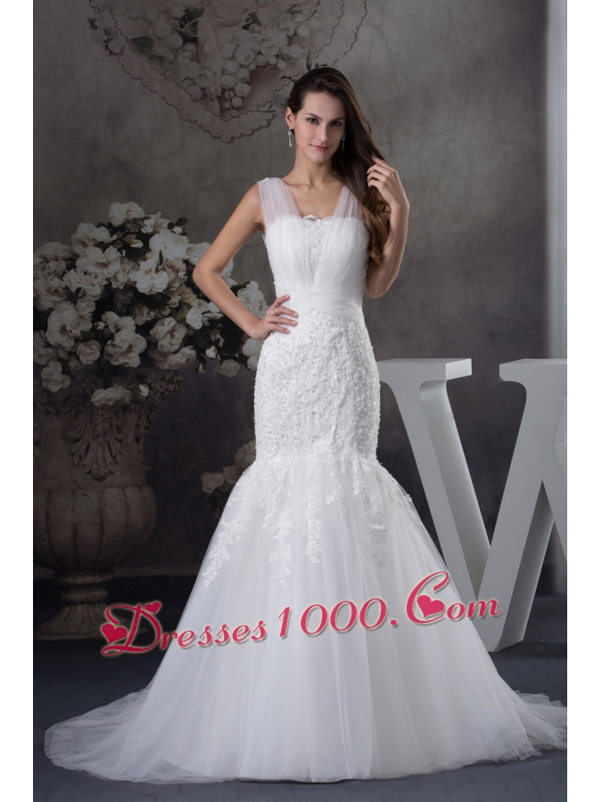 V-neck Mermaid Lace Brush Train Wedding Dress