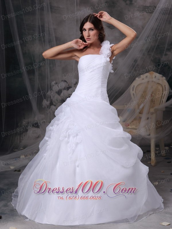White Floral One Shoulder Wedding Gowns Organza Ruch