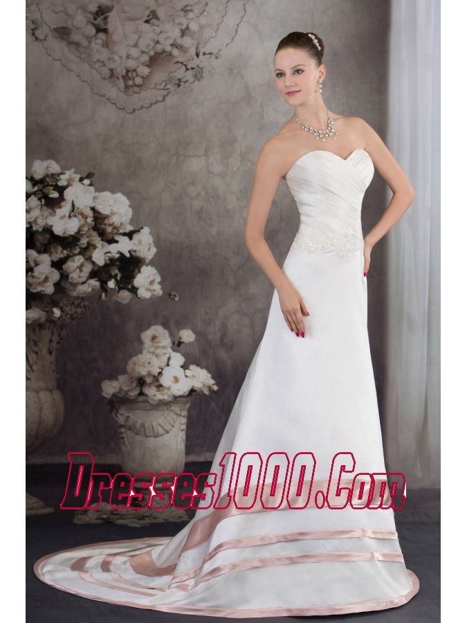 Sweetheart Brush Train Satin Appliques A-line Wedding Dress