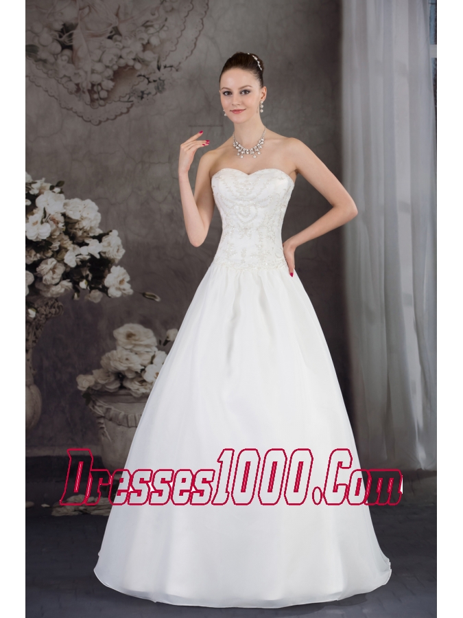 A-line Sweetheart Organza Appliques With Beading Wedding Dress