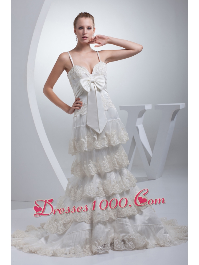 Spaghetti Straps Bow A-line Ruffled Layers Wedding Dress