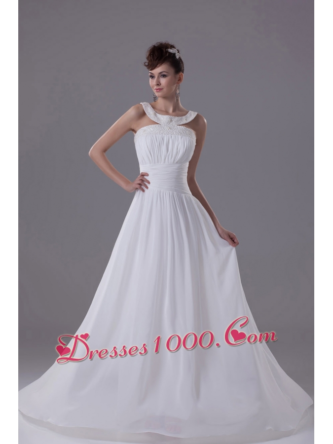 Scoop Neck Beading Princess Wedding Dress With Cross Criss Back