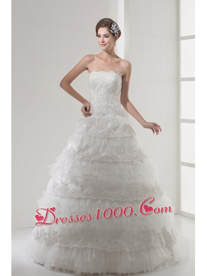 Lace Strapless A-line / Princess Wedding Dress With Brush Train