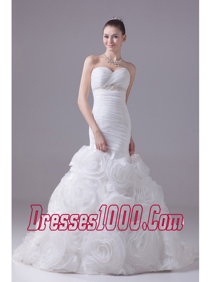 Hand Made Flowers Sweetheart Mermaid / Trumpet Wedding Dress