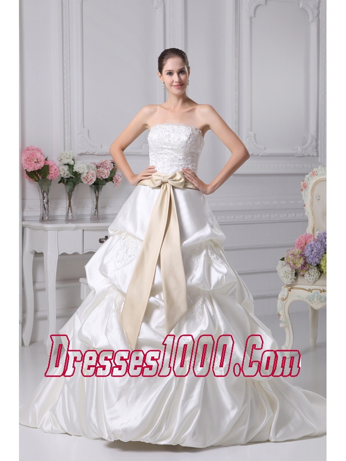 Appliques A-Line Court Train Strapless Ivory Wedding Dress