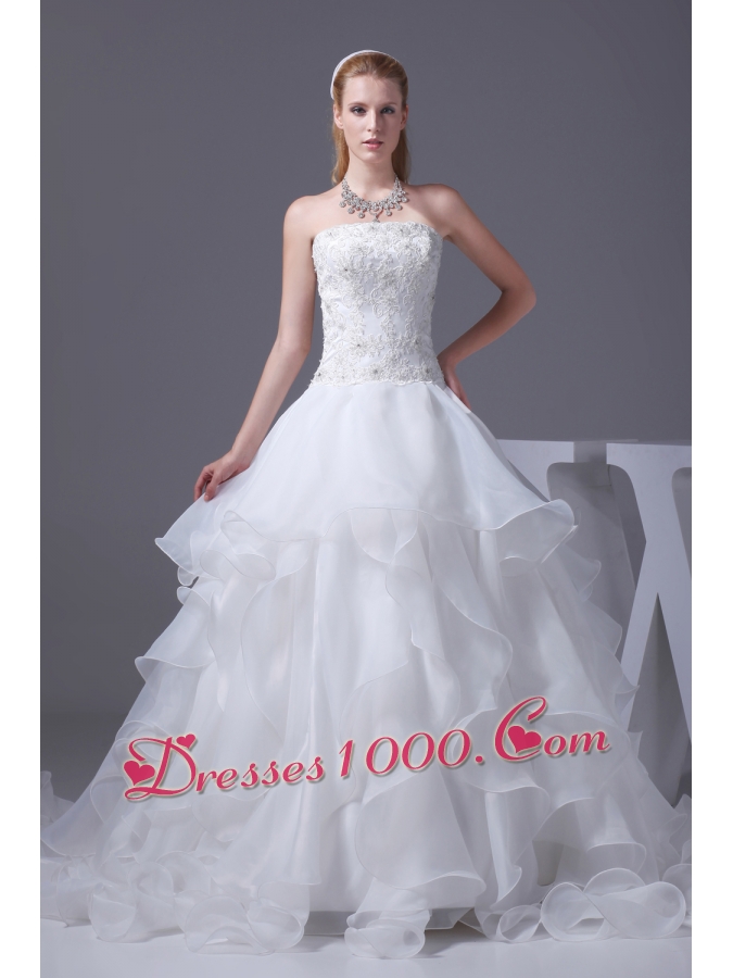 Appliques With Beading Strapless Ruffles A-line Wedding Dress