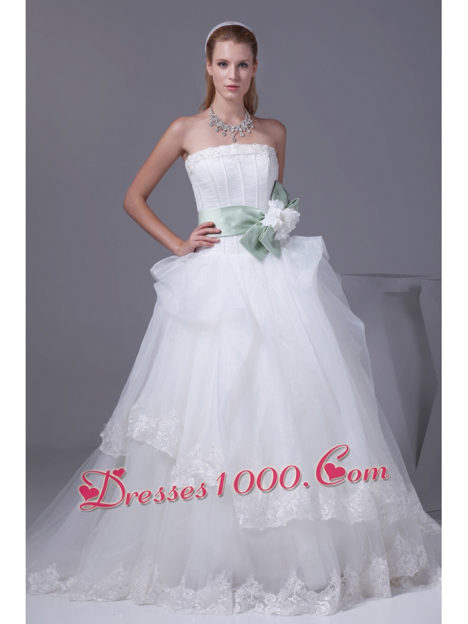 Lace Sash With Hand Made Flower A-line Wedding Dress