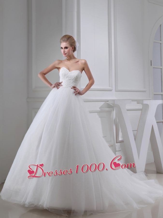 Appliques With Lace Sweetheart Ball Gown Chapel Train Wedding Dress