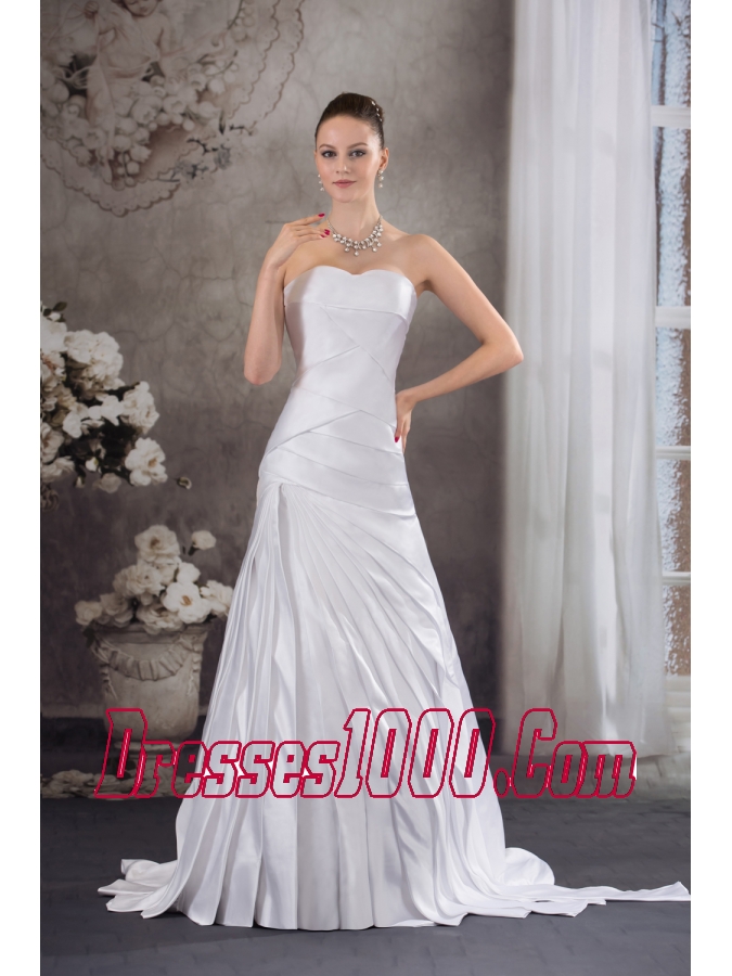 Sweetheart A-line Brush Train Pleat Wedding Dress