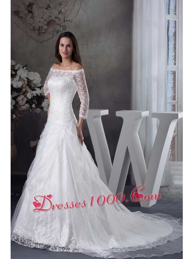 Off The Shoulder 3/4 Sleeves Lace A-line Wedding Dress