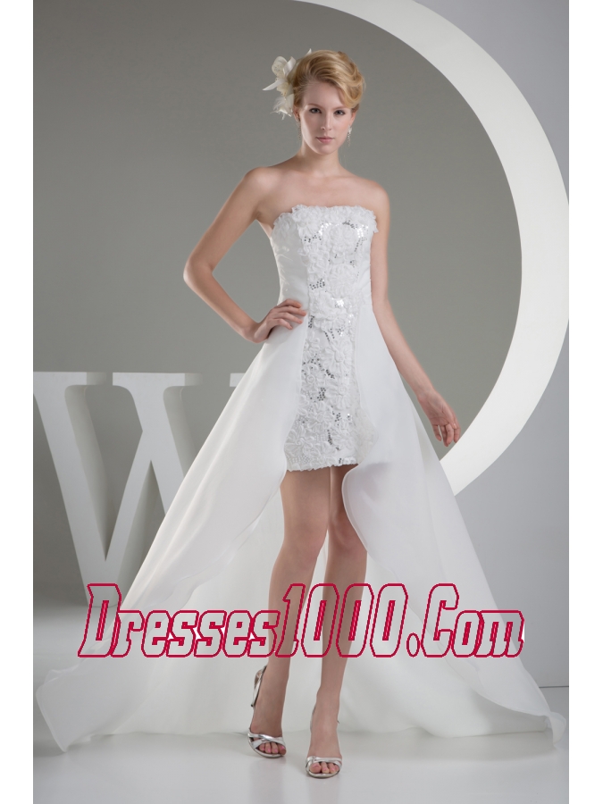 Discount Hand Made Flowers High Low Strapless Prom Dress